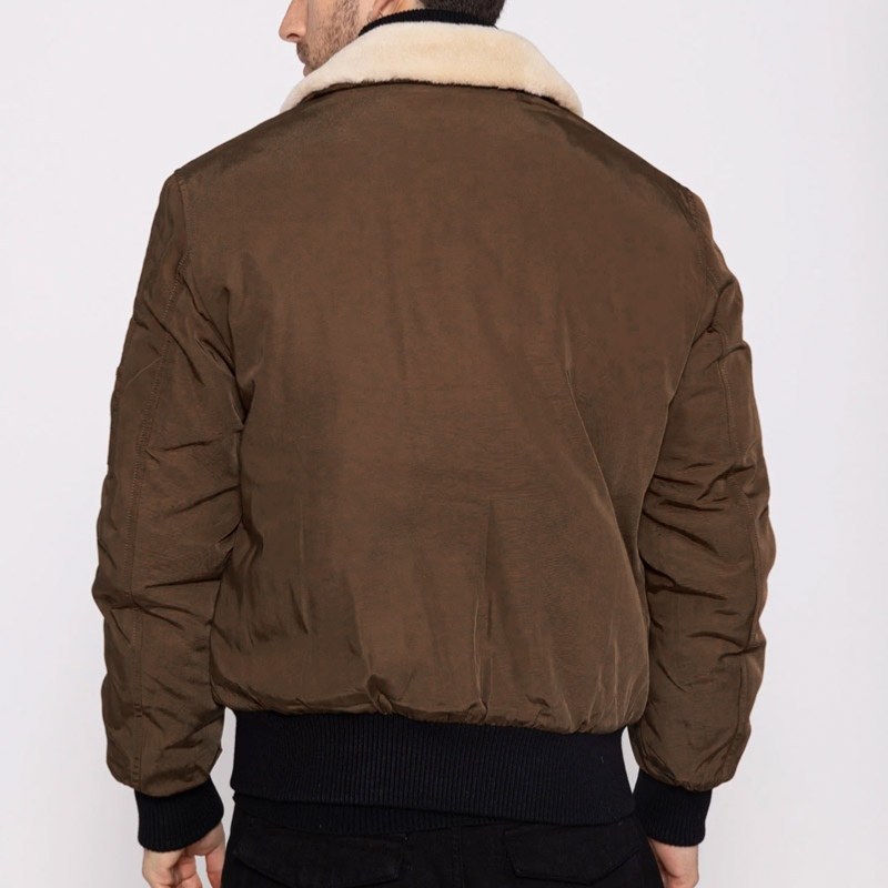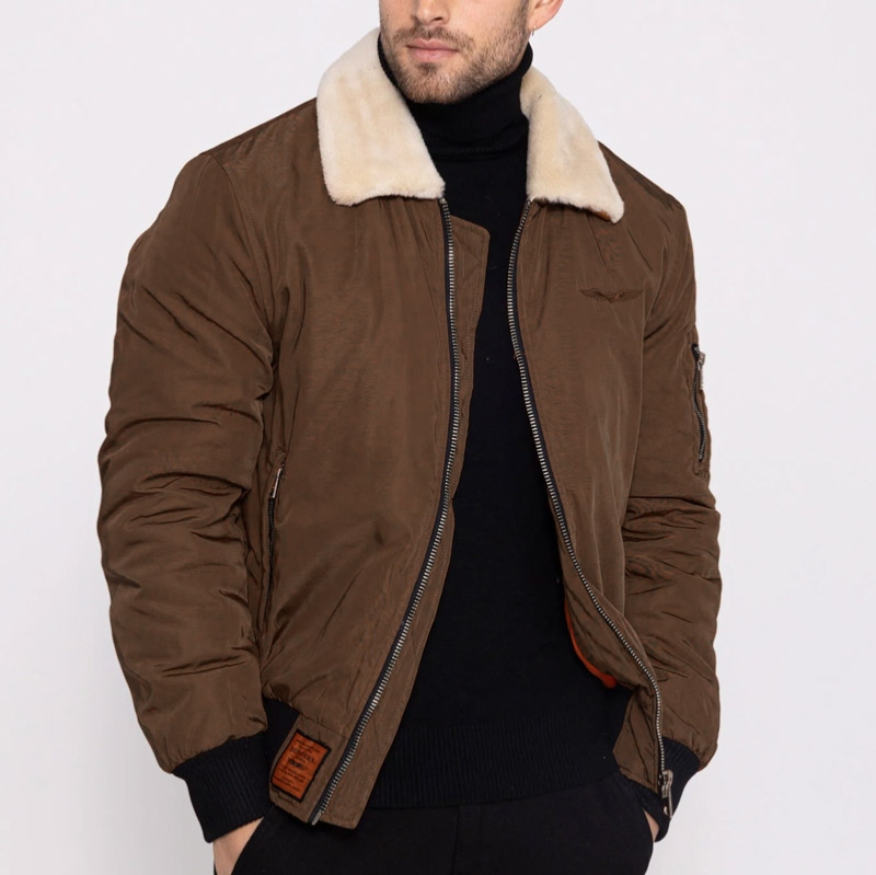 Blouson aviateur Bombers Original pour homme modèle Versmold coloris brown avec col en fourrure sherpa beige.