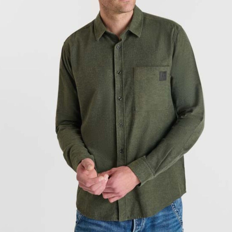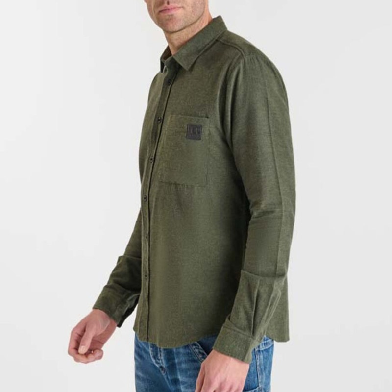 Chemise en popeline de coton doux Le Temps des Cerises pour homme modèle Debin couleur vert british.