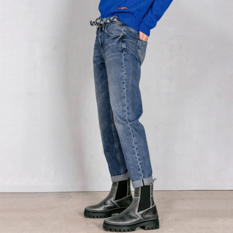 Jeans Freeman T Porter pour femme coupe boyfriend modèle Timea délavage magnus, denim haute qualité 100% coton vendu avec ceinture en denim tressé.