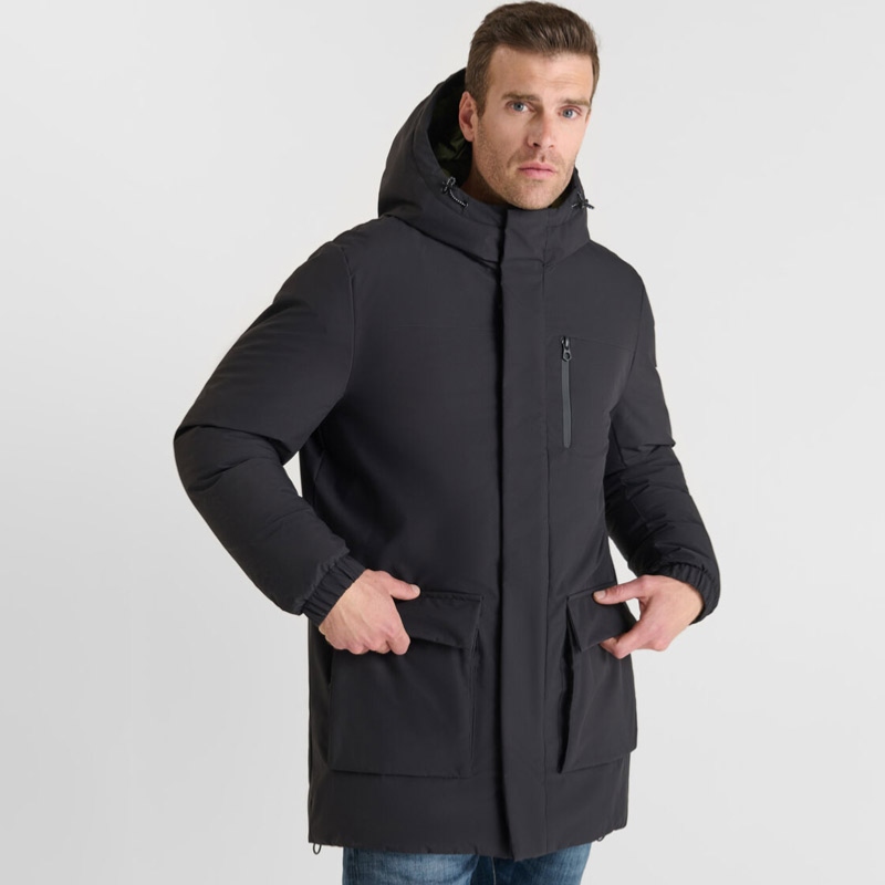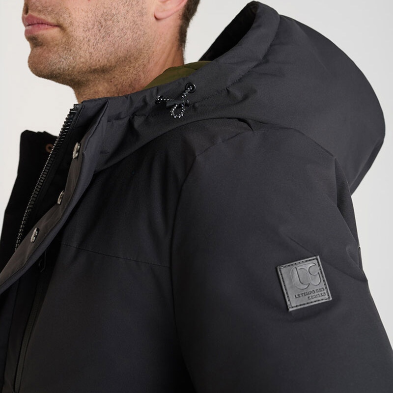 Manteau type Parka Le Temps des Cerises homme modèle Uper noire, chaude et imperméable.
