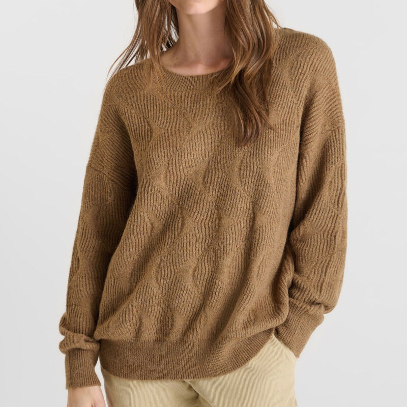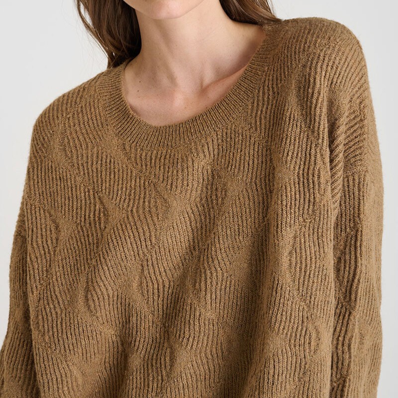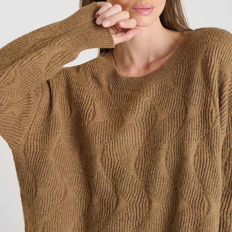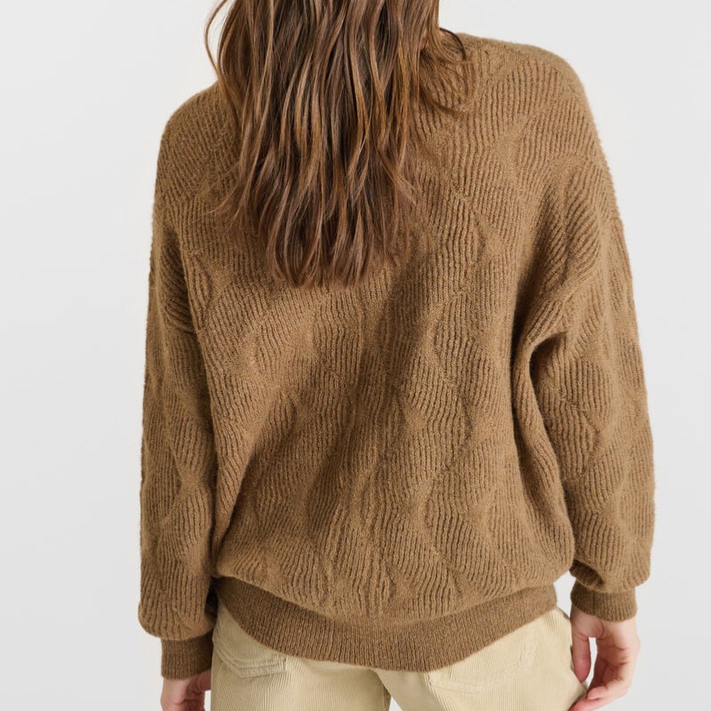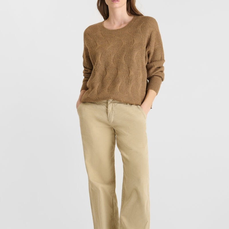 Pull femme Le Temps des Cerises Zelena en maille texturée de couleur beige camel nommé cocoa