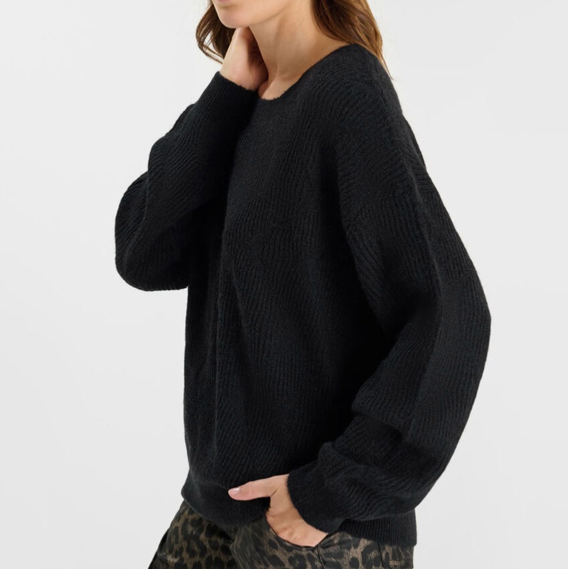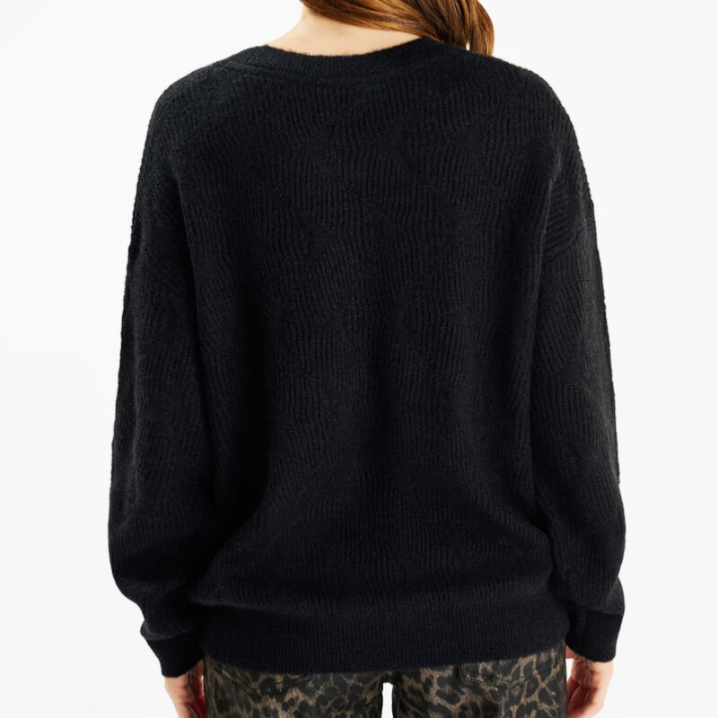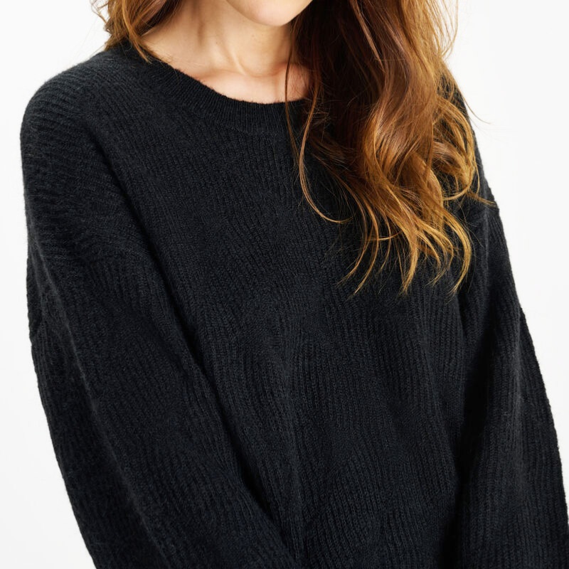 Pull femme Le Temps des Cerises Zelena en maille texturée chaude et douce de couleur noir