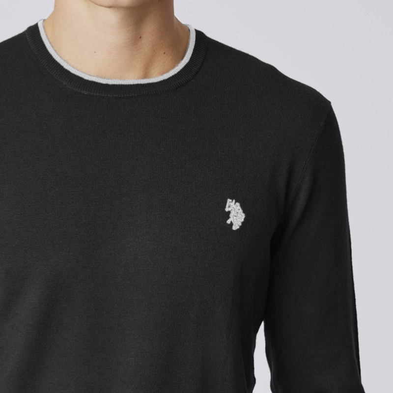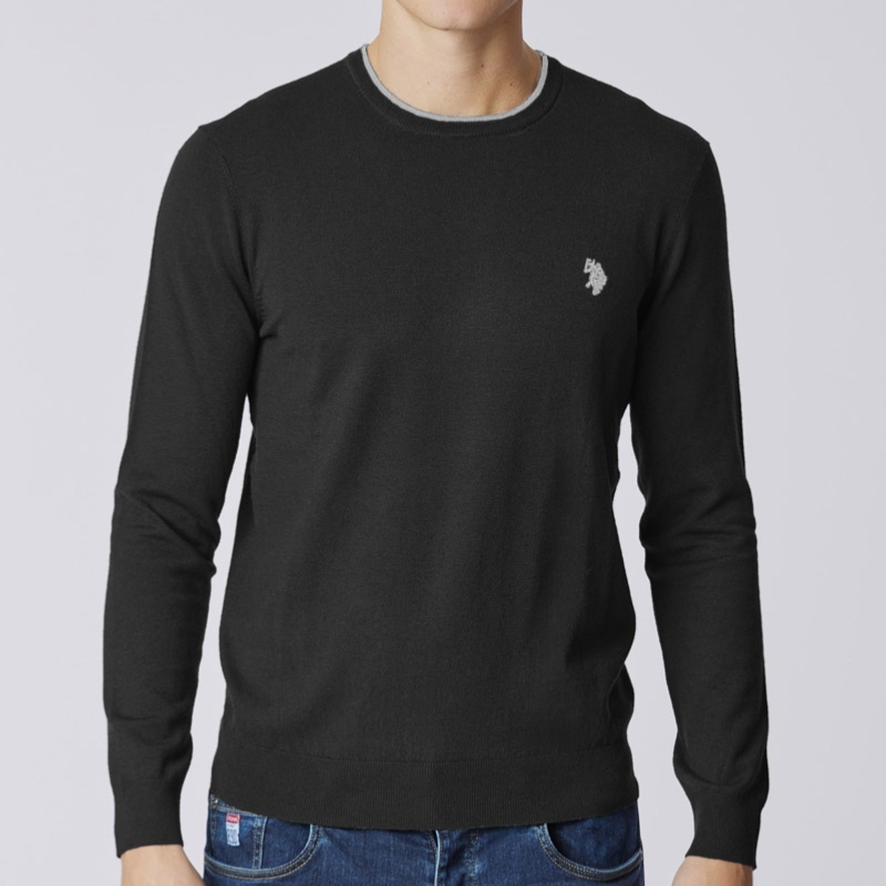 Pull U.s. Polo Assn. pour homme modèle Alf, coloris noir, logo joueur de polo uspa double pony brodé à la poitrine.