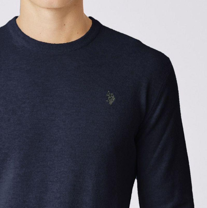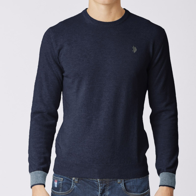 Pull en laine Us Polo Assn pour homme, coloris bleu marine, logo joueur de polo uspa double pony brodé à la poitrine.