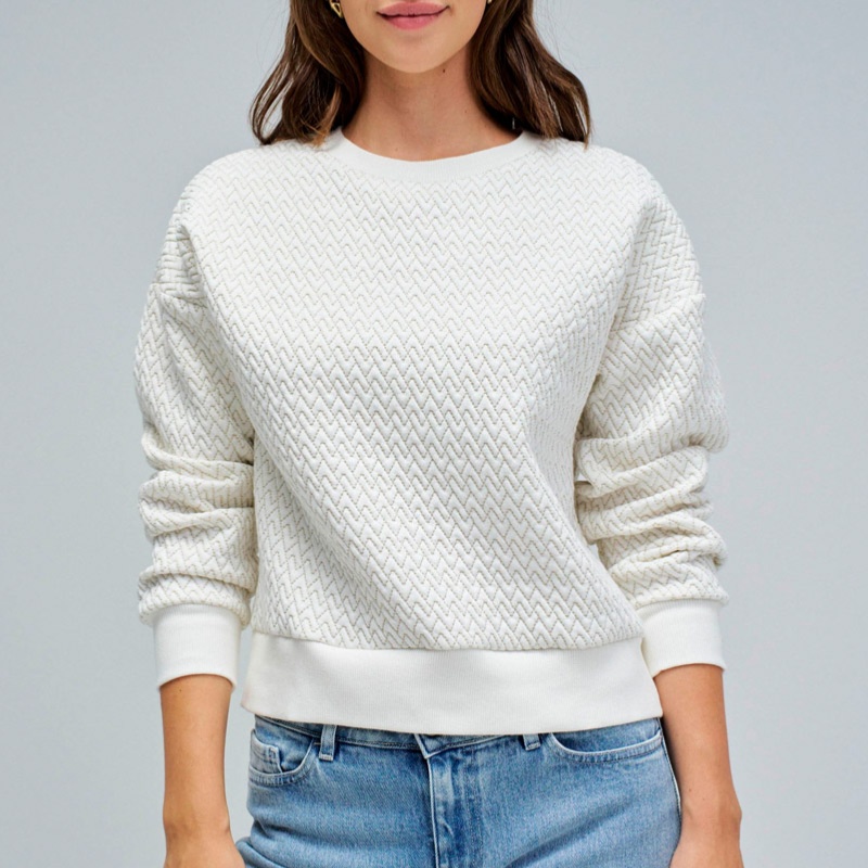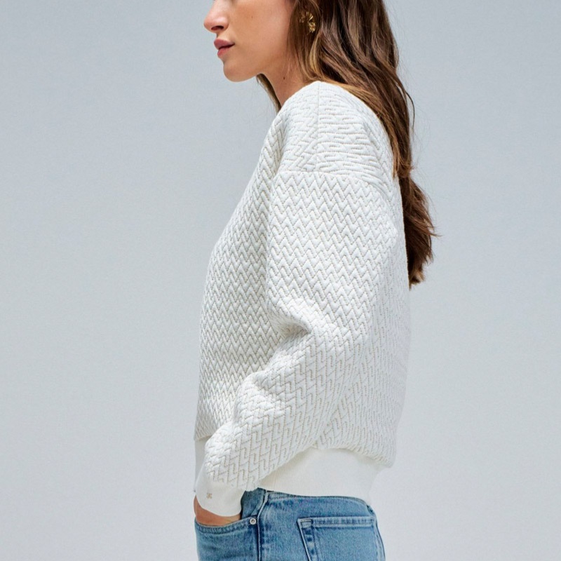 Sweat à col rond Salsa Jeans pour femme blanc light pearl à motifs brodés or