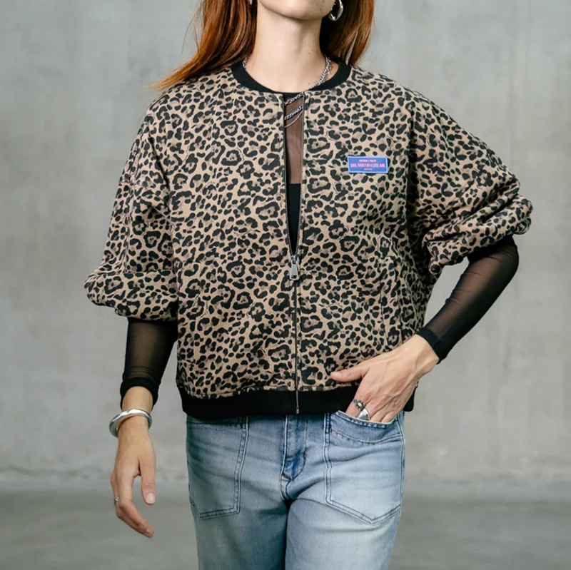 Veste Leopard Freeman T Porter modèle Vega Leo doublée pour femme, coupe façon bombers